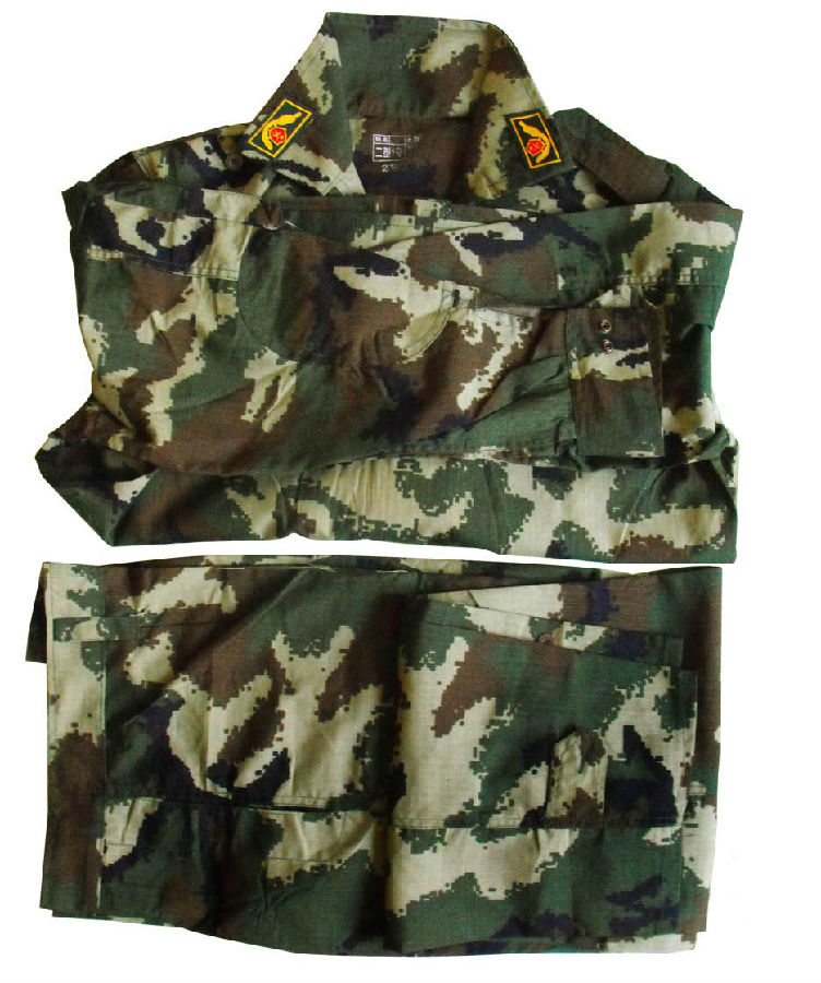 迷彩服,质地纯棉或棉加涤纶,耐磨性好,透气性好,穿着舒适。多种款式,各种材质可选择。